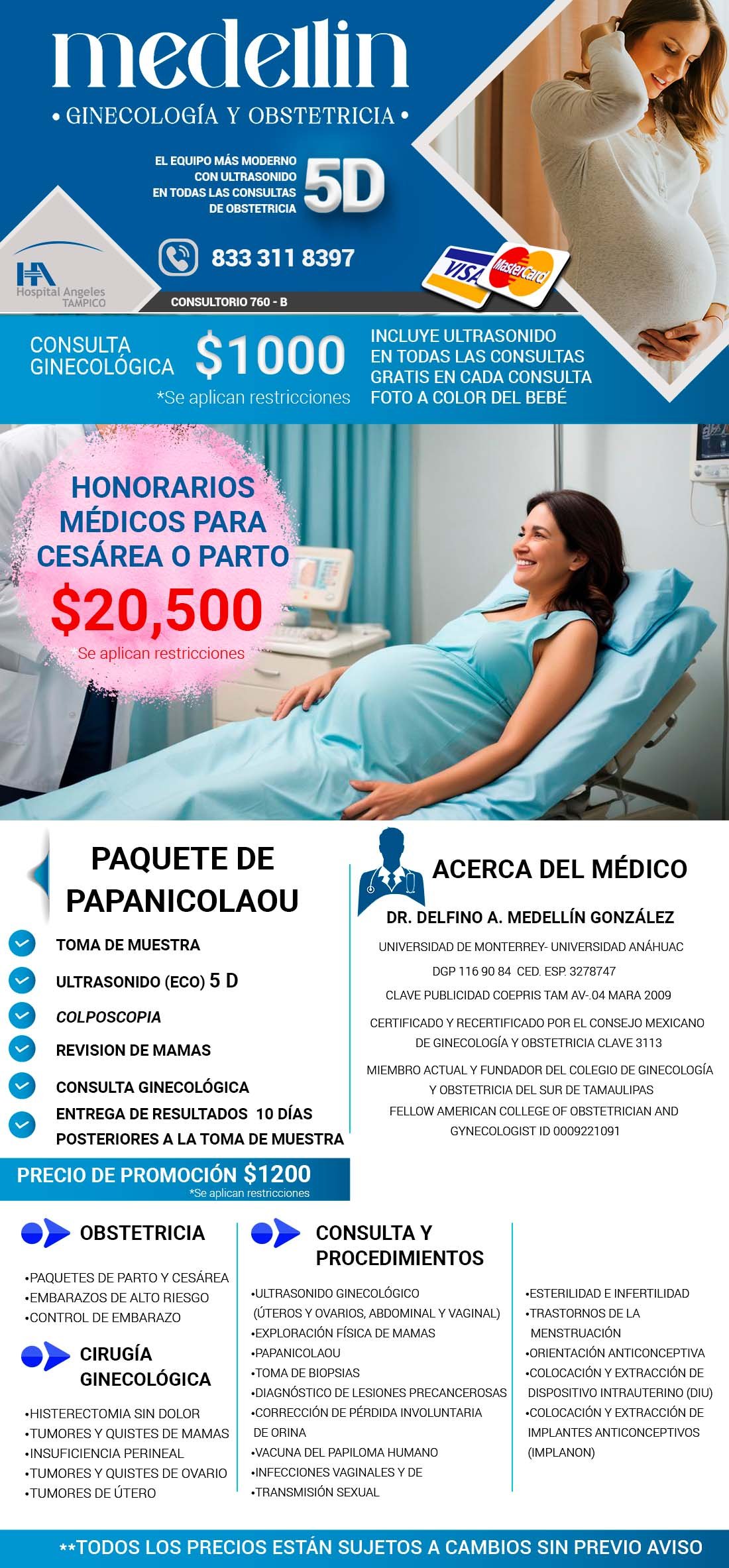 HOSPITAL ÁNGELES TAMPICO. Avenida Hidalgo 5503, Fracc. Flamboyanes. Consultorio 760.